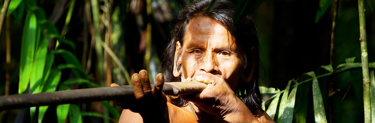 Inicio del circuito Ecocultural, excursión a pie o en canoa según lo permita la estación a “Nuevo Perú”, donde se encuentra establecida una comunidad de la etnia Yagua, esta visita le permitirá conocer sus costumbres ancestrales, apreciar su original vestimenta de fibras de palmera e incluso probar su puntería con la “pucuna” (cerbatana) que los Yaguas utilizaron por siglos para la caza. Almuerzo en el albergue y por la tarde, emprenderá la excursión etnobotánica donde podrá conocer especies muy particulares del reino vegetal como la Uña de Gato e incluso la llamada “soga del muerto” o Ayahuasca. Recorrido a través del fundo ribereño de Santa María de Ojeal, donde observará algunas de las actividades productivas que desarrollan los pobladores. Al finalizar la tarde empezará la excursión nocturna. Para terminar la noche, disfrutará de la cena, acompañada de las historias y leyendas de la rica mitología amazónica.