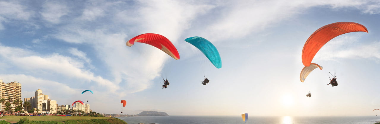 A hora acordada, lo recogeremos del hotel para trasladarlo al Parque del Amor en Miraflores, para iniciar la aventura que le permitirá disfrutar del “vuelo en parapente” con la ayuda de un piloto calificado, lo que permitirá disfrutar del panorama sin preocupaciones y con seguridad. Culminada la aventura se dirigirá a un restaurante ubicado en Larcomar para disfrutar de un almuerzo buffet.